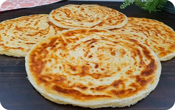 بعد اخراجه لفترة يتم تحميره على الصاج على نار متوسطة